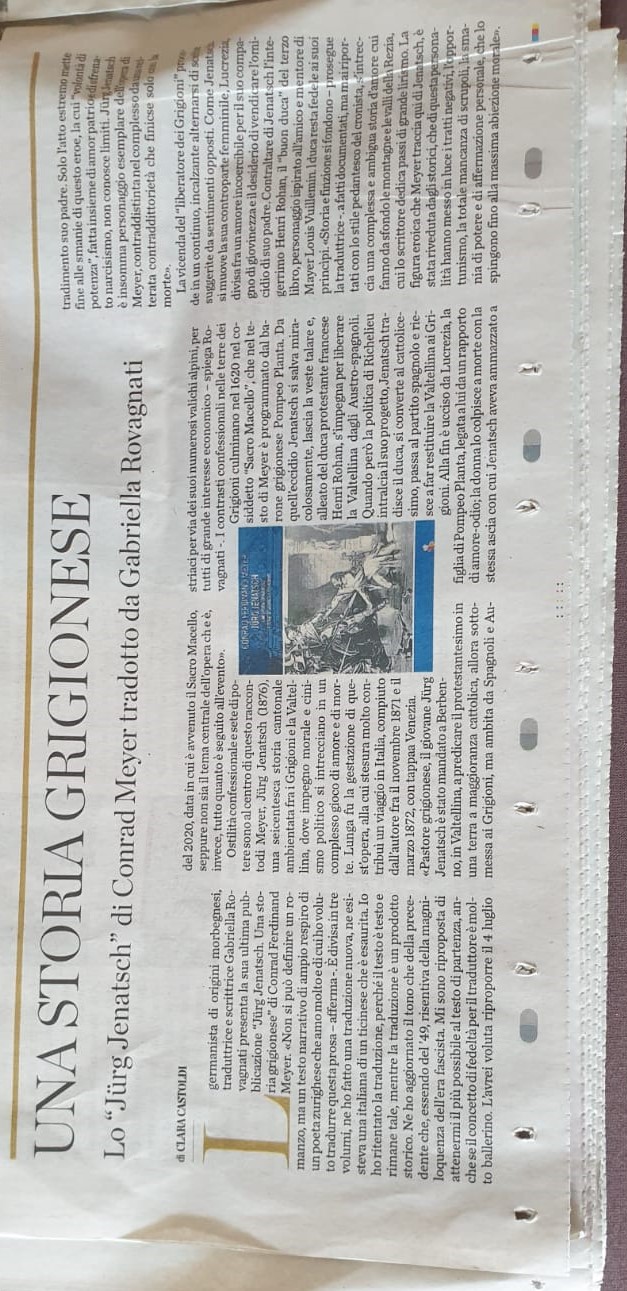 •  Conrad Ferdinand Meyer, Jürg JenatschUna storia grigionese. A cura di G.R., Milano: 2021, Mimesis, 240 pp.